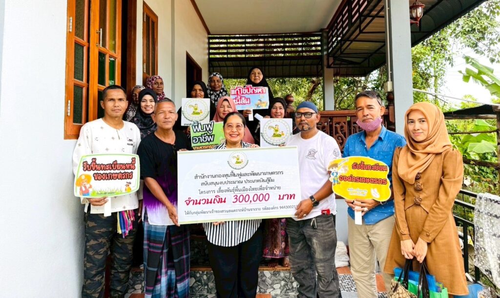 วันที่ 24 กันยายน 2568 สำนักงานกองทุนฟื้นฟูและพัฒนาเกษตรกร โดยนางสาวอิศราภรณ์ กาฬสุวรรณ หัวหน้าสำนักงานสาขาจังหวัดปัตตานี พร้อมด้วยบุคลากรสำนักงานสาขาจังหวัดปัตตานี มอบงบประมาณประเภทเงินกู้ยืม (ปลอดดอกเบี้ย) โครงการเลี้ยงโคพันธุ์พื้นเมืองไทยเพื่อจำหน่าย งบประมาณ 300,000 บาท และจัดทำสัญญา เพื่อโอนงบประมาณให้กับองค์กรเกษตรกร กลุ่มพัฒนาเจ้าของสวนสงเคราะห์บ้านจาเราะ หมู่ที่ 6 ตำบลตะบิ้ง อำเภอสายบุรี จังหวัดปัตตานี